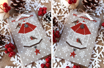 Buongiorno care Ricamatrici! Un anno fa vi ho mostrato questo dolcissimo ornament che sarebbe stato pubblicato a breve sulla rivista Just Cross Stitch, nel numero di Natale 2024, e lo avete amato in molte. Oggi è finalmente disponibile nel mio negozio e se volete potete acquistarlo e ricamarlo in un batter di ciglia. Fa parte della mia serie dedicata ai pettirossi, all’inverno, alla neve e alle stelle, e in questo disegno ho voluto immortalare con ago e filo uno dei momenti che amo di più, quando gli uccellini, nelle fredde e nevose mattine invernali, arrivano con il loro frullare di ali a mangiare i semi, i biscotti e le palline di grasso messe apposta per loro, per scaldarsi e proteggersi dal gelo.