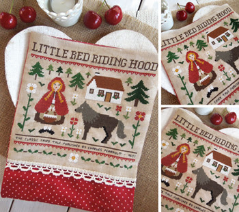 La seconda fiaba è naturalmente Cappuccetto Rosso, con la bimba, la casetta della nonna e… il lupo! Tutti quelli che hanno visto il mio schema prima che lo pubblicassi mi hanno detto che il mio lupo sembra buono, affettuoso, che non è affatto minaccioso e temibile. Ebbene, è proprio così! Spero perdonerete questa mia “concessione artistica”, amo troppo i lupi per rappresentarli come le “cattive bestie” che molte persone vogliono che siano.